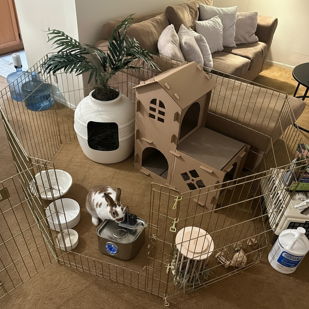 - Anti-tip engineering - Even energetic rabbits who hop around it can't knock it over
