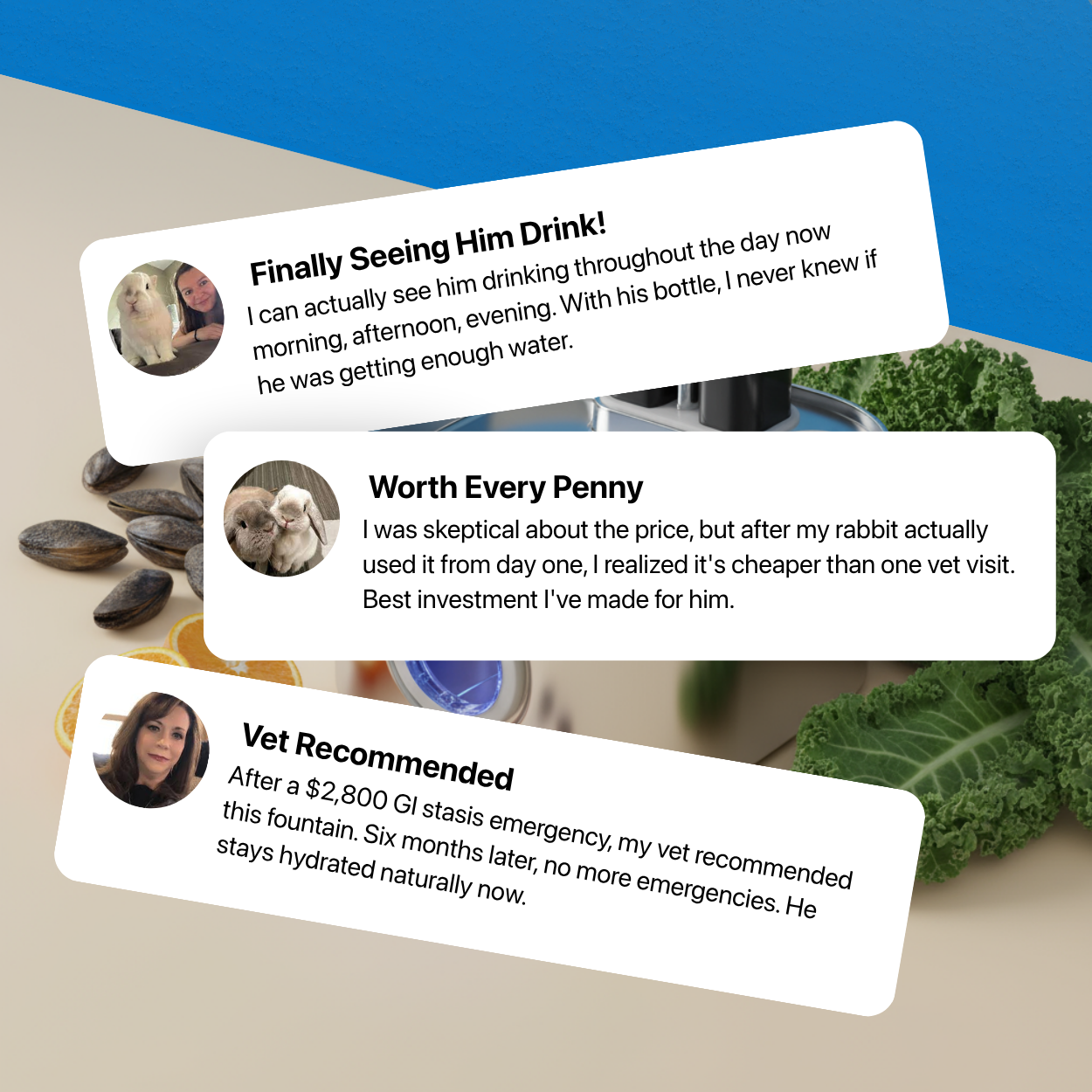 99.2% of rabbits start using it within 48 hours. The few who don't get a refund so there's no financial risk in trying. But the risk of not addressing hydration is what leads to the $2,000-5,000 emergencies.